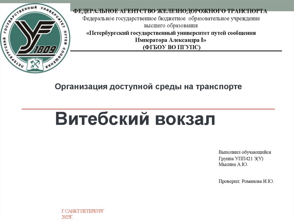 ФЕДЕРАЛЬНОЕ АГЕНТСТВО ЖЕЛЕЗНОДОРОЖНОГО ТРАНСПОРТАФедеральное государственное бюджетное образовательное учреждение