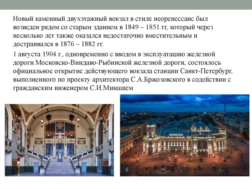 Новый каменный двухэтажный вокзал в стиле неоренессанс былвозведен рядом со старым зданием в 1849 – 1851 гг, который через