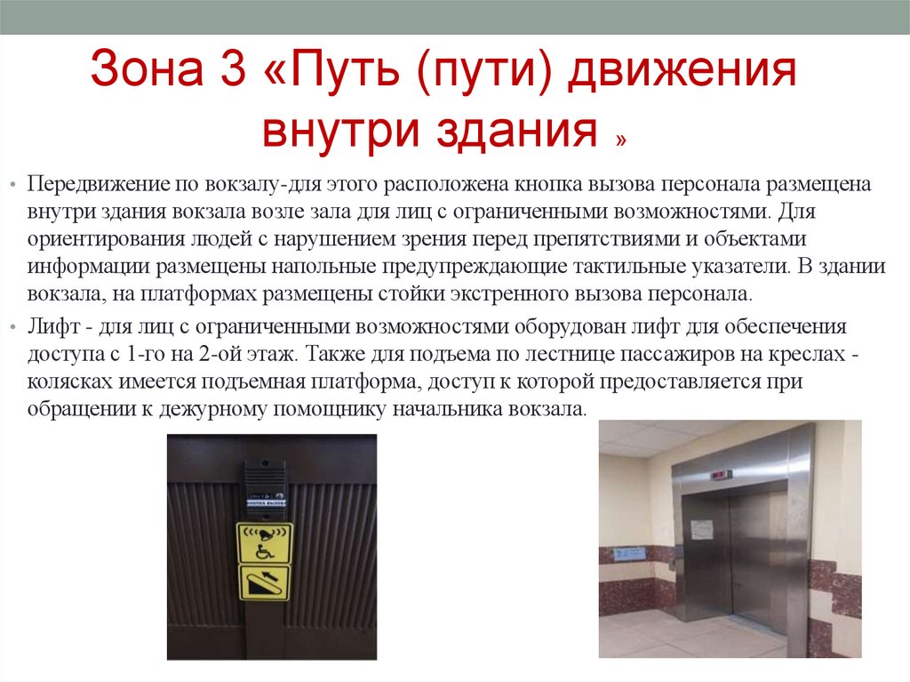 • Передвижение по вокзалу-для этого расположена кнопка вызова персонала размещена