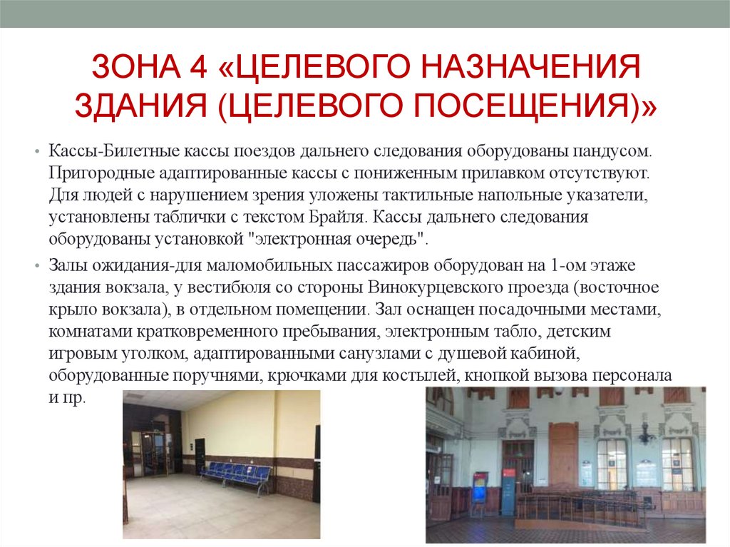 • Кассы-Билетные кассы поездов дальнего следования оборудованы пандусом.