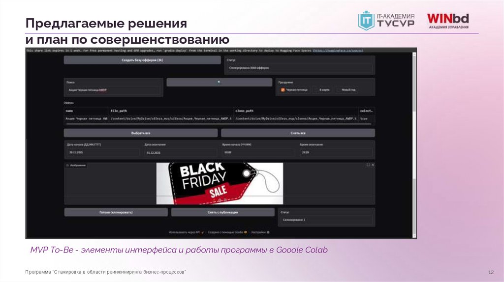 MVP To-Be - элементы интерфейса и работы программы в Gooole Colab