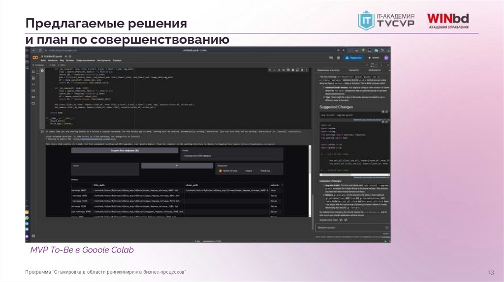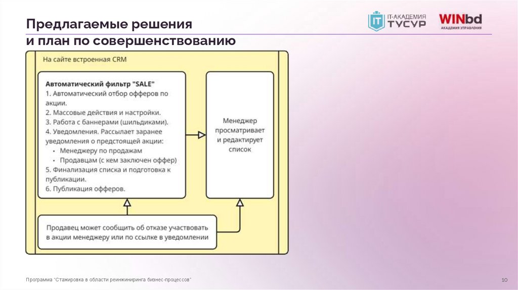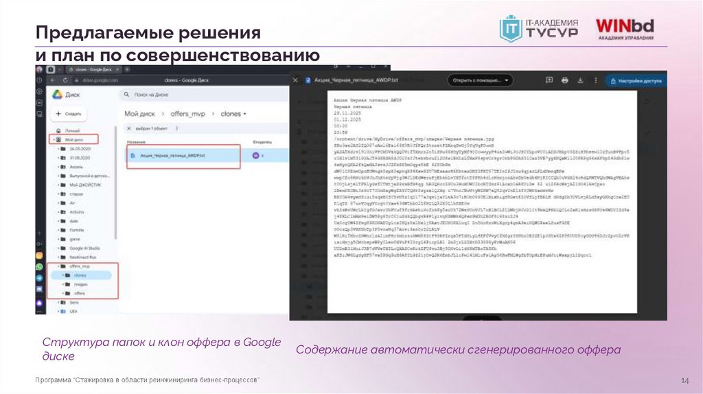 Предлагаемые решенияи план по совершенствованию