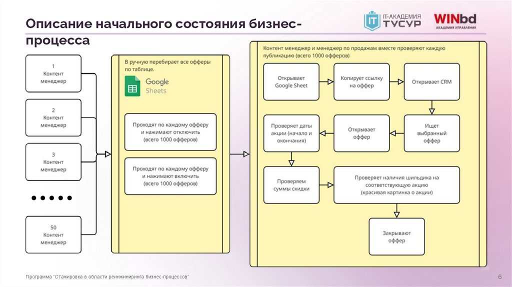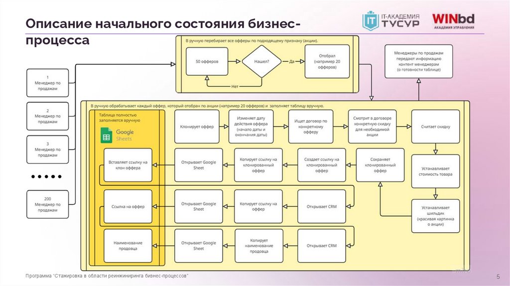 Описание начального состояния бизнеспроцессаПрограмма “Стажировка в области реинжиниринга бизнес-процессов”