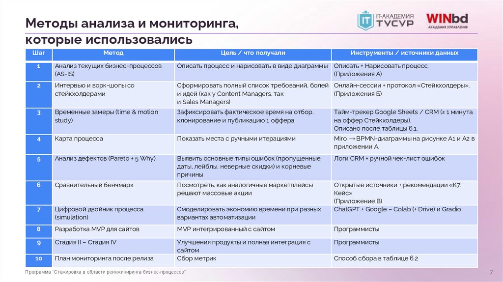 Методы анализа и мониторинга,которые использовались