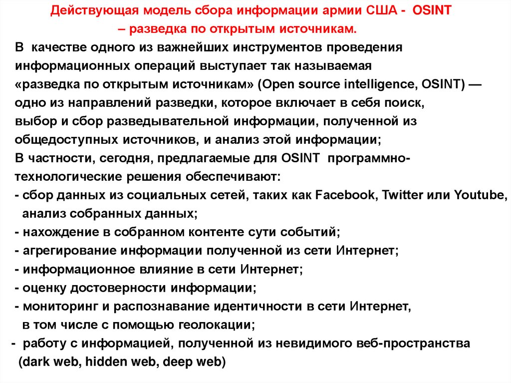 Действующая модель сбора информации армии США - OSINT– разведка по открытым источникам.