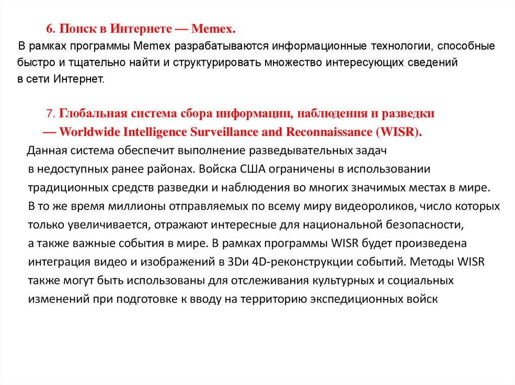 – 6. Поиск в Интернете — Memex.В рамках программы Memex разрабатываются информационные технологии, способные