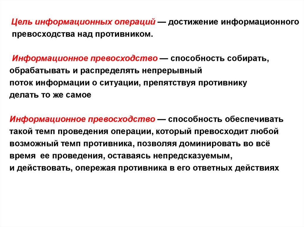 Цель информационных операций — достижение информационногопревосходства над противником.