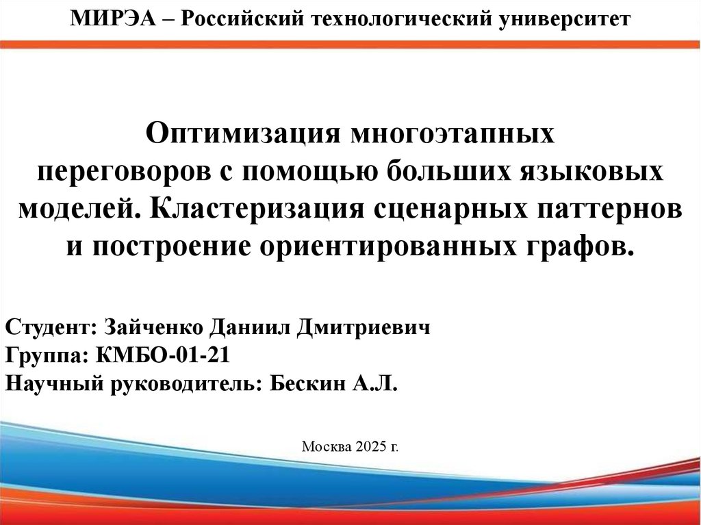 1. Оптимизация многоэтапных переговоров с помощью больших языковых моделей. Кластеризация сценарных паттернов и построение