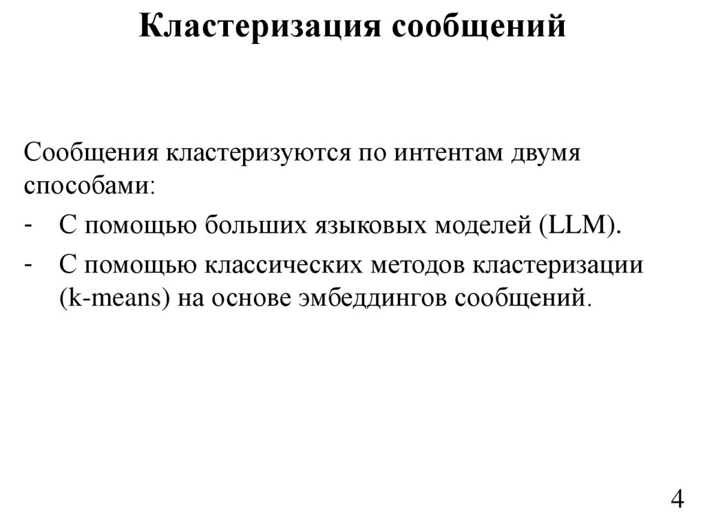 Кластеризация сообщенийСообщения кластеризуются по интентам двумя