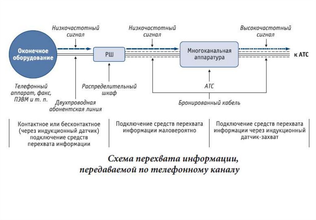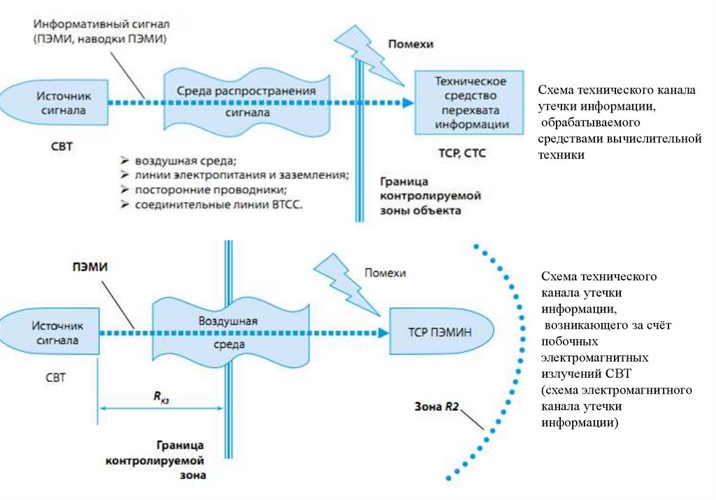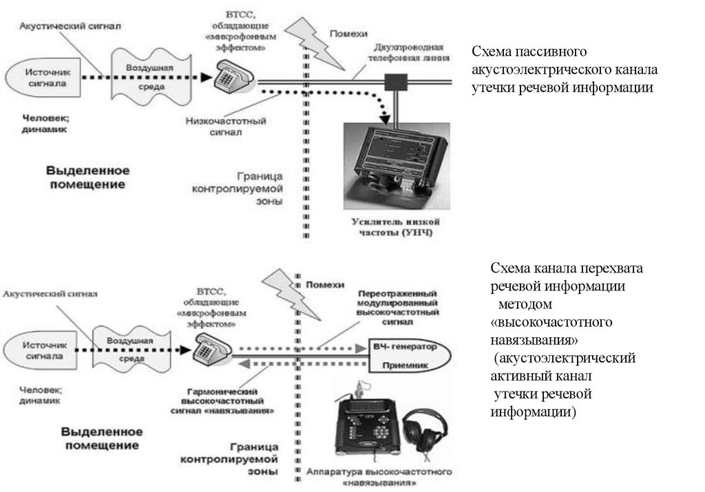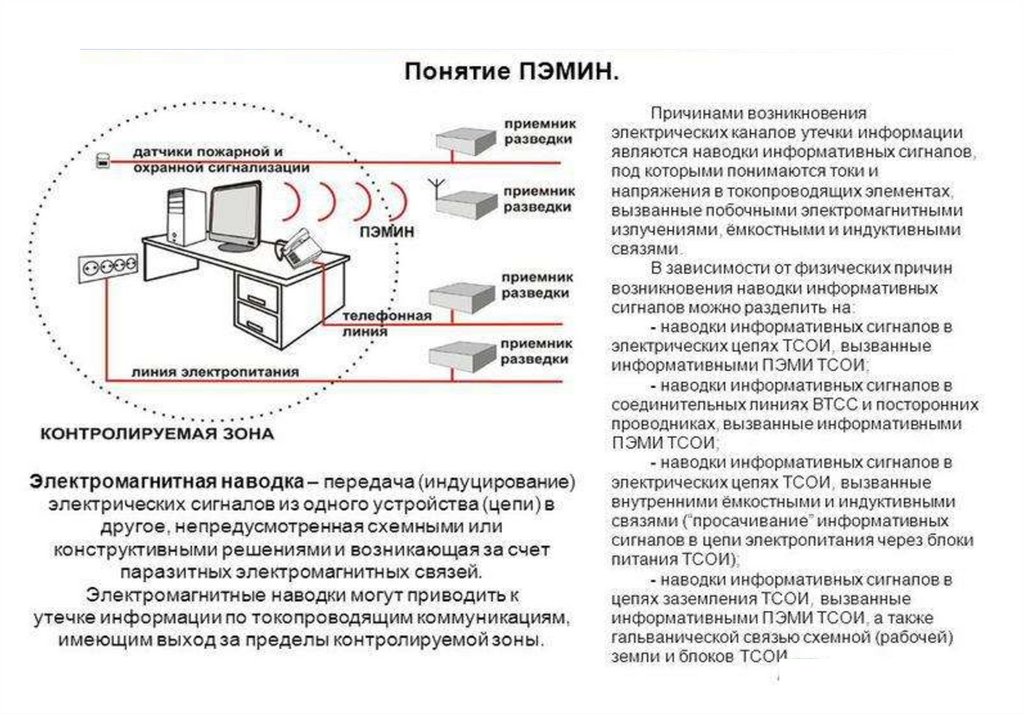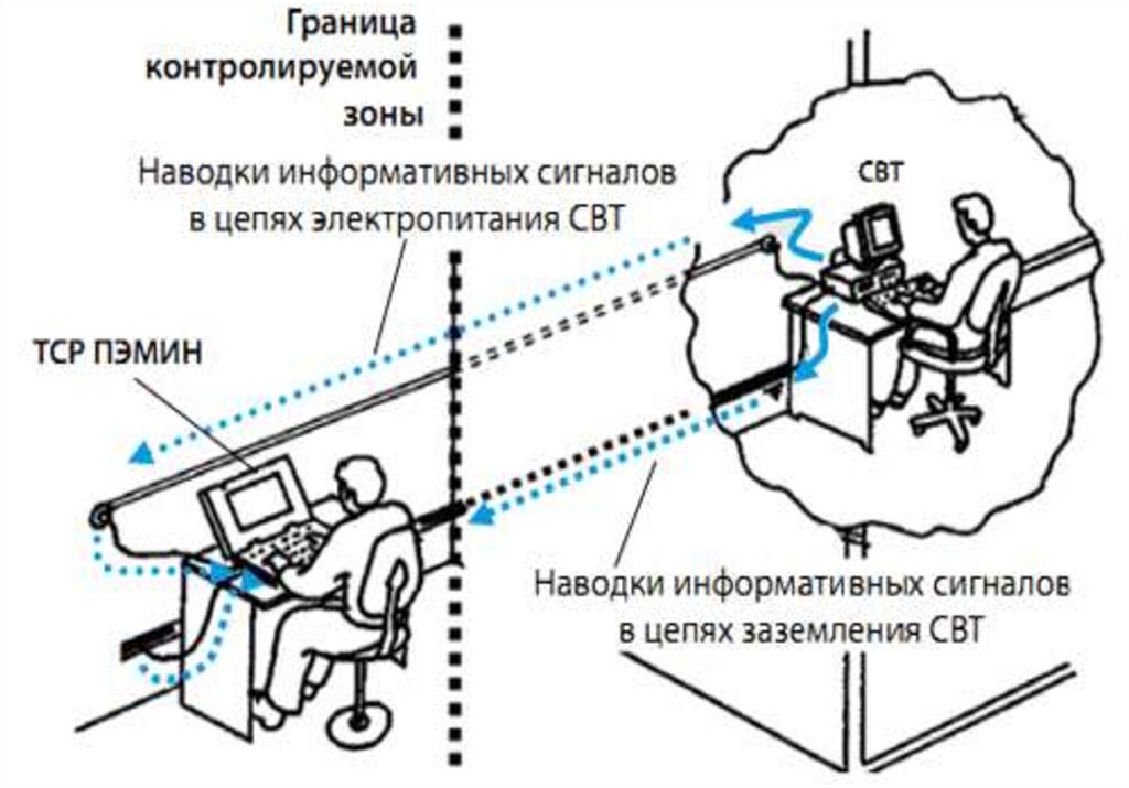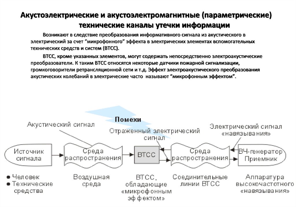 ёмкостными и (или) индуктивными связями («просачивание» информативных сигналов в цепи