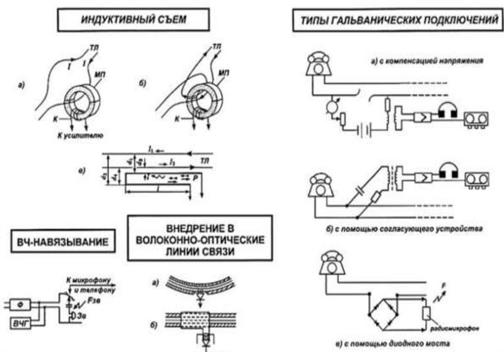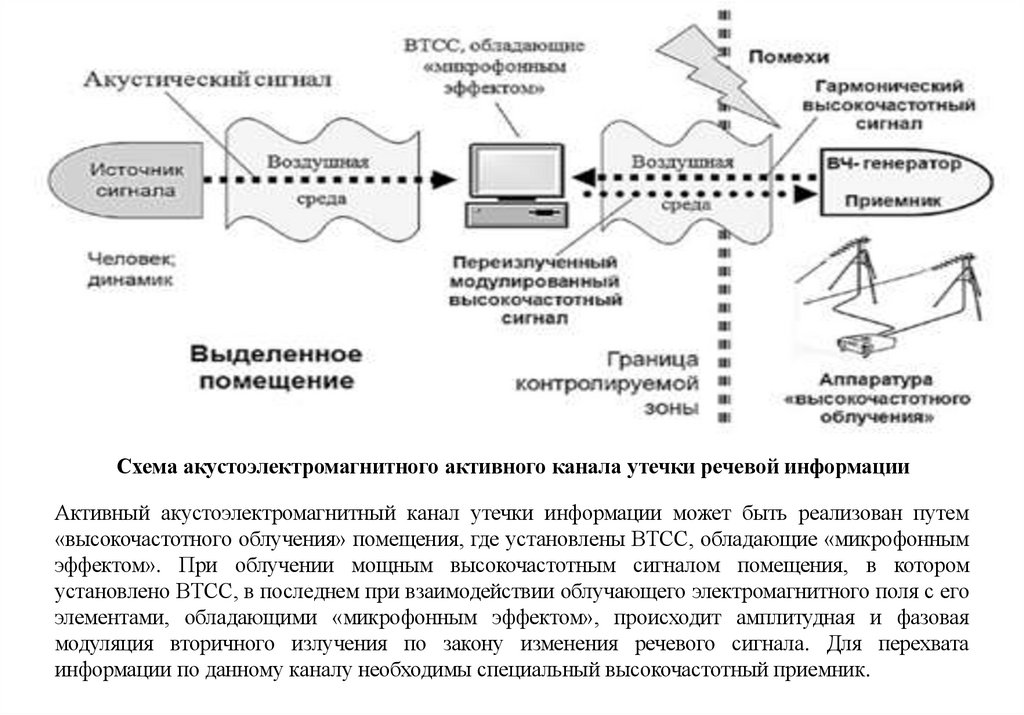 б) наводки информативных сигналов в соединительных линиях ВТСС и посторонних проводниках,