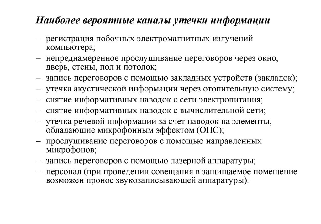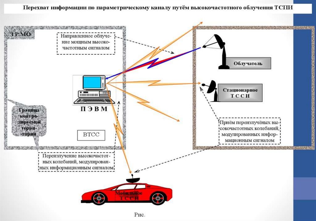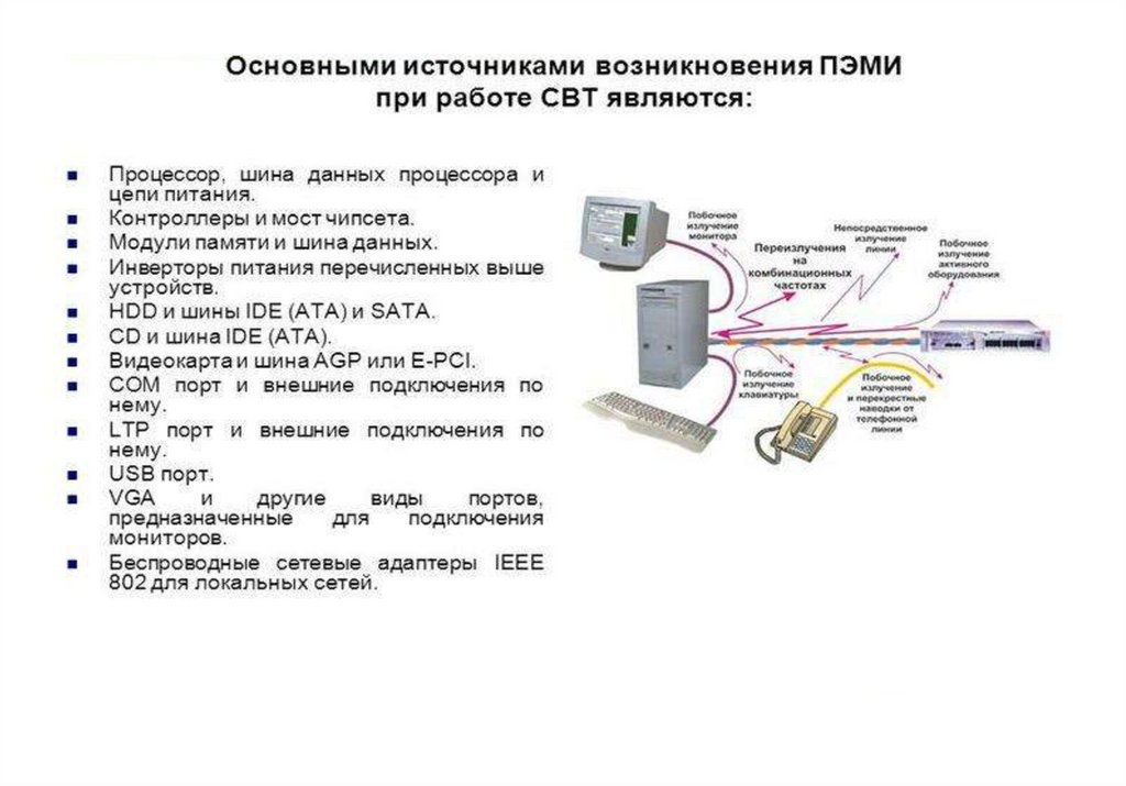 Наиболее вероятные каналы утечки информации– регистрация побочных электромагнитных излучений