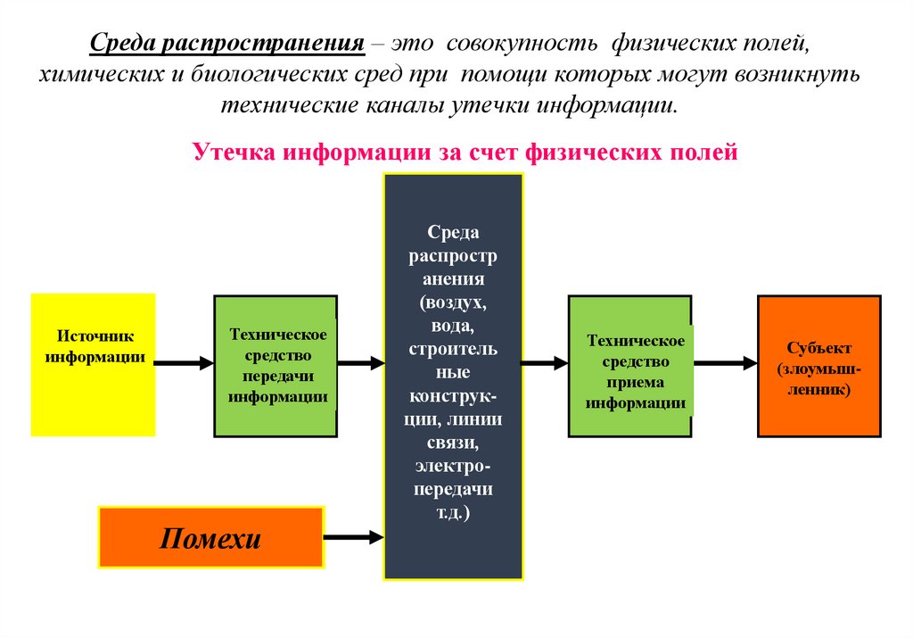 Среда распространения – это совокупность физических полей,химических и биологических сред при помощи которых могут возникнуть