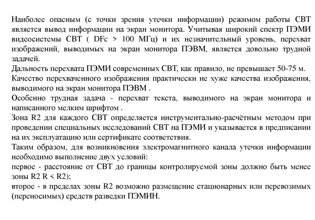 Дальность перехвата ПЭМИ современных СВТ, как правило, не превышает 50-75 м.