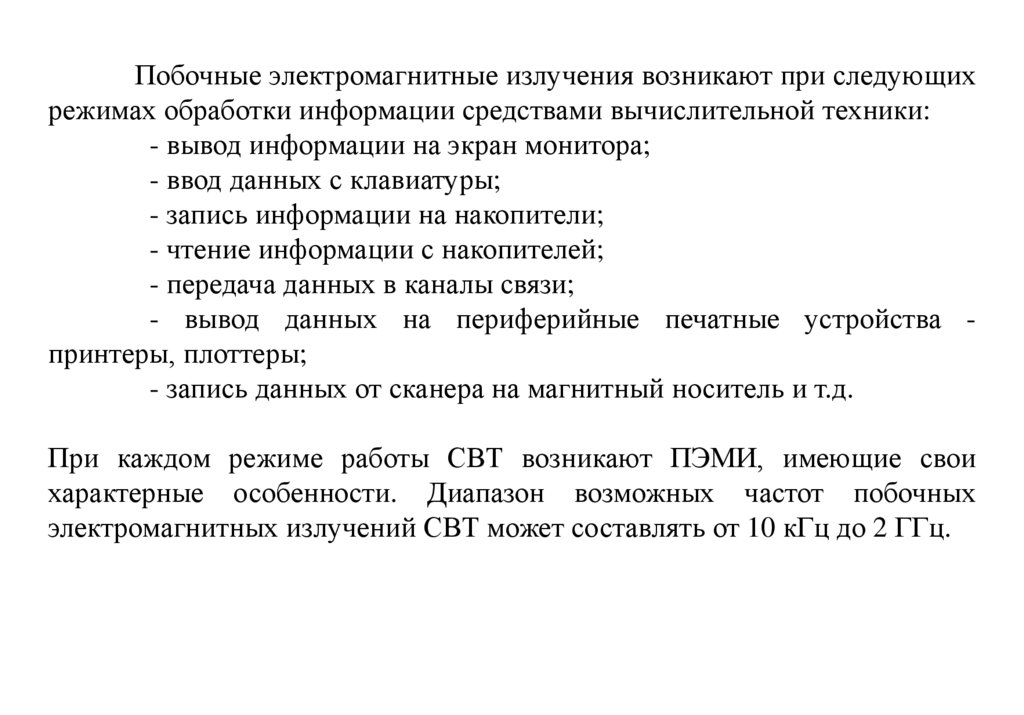 электромагнитных излучений СВТ может составлять от 10 кГц до 2 ГГц.