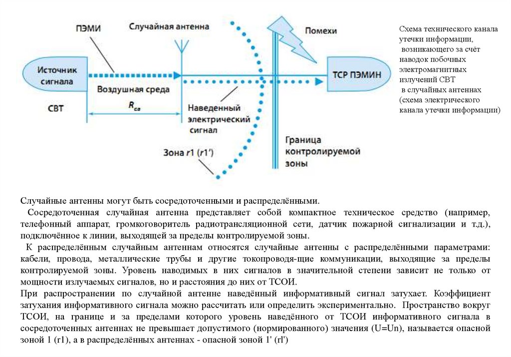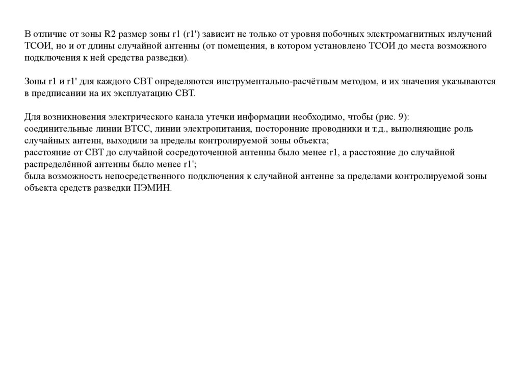 В отличие от зоны R2 размер зоны r1 (r1') зависит не только от уровня побочных электромагнитных излученийТСОИ, но и от длины случайной антенны (от помещения, в котором установлено ТСОИ до места возможного