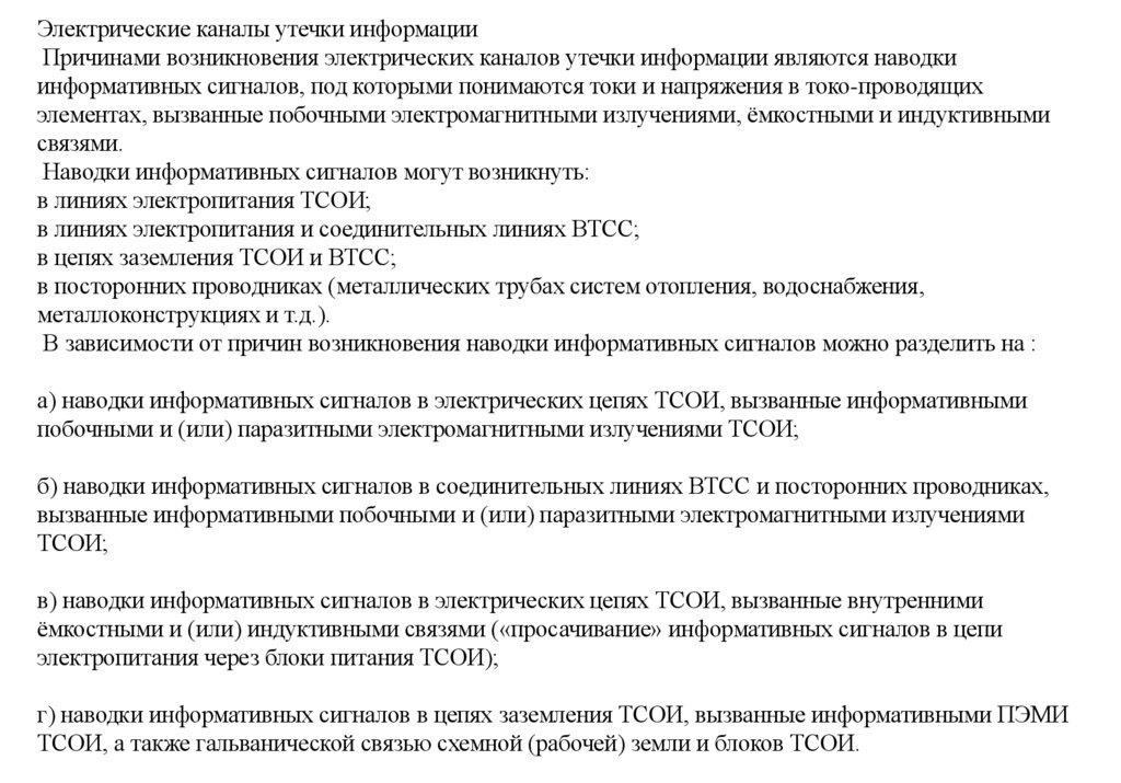Электрические каналы утечки информацииПричинами возникновения электрических каналов утечки информации являются наводки