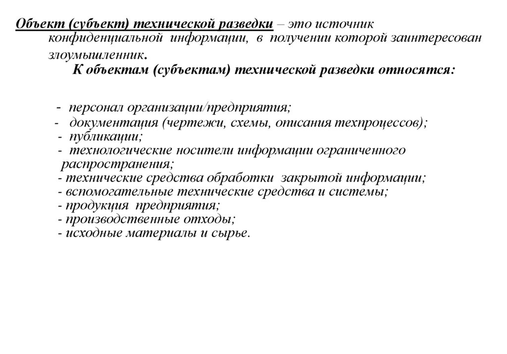 Объект (субъект) технической разведки – это источникконфиденциальной информации, в получении которой заинтересован