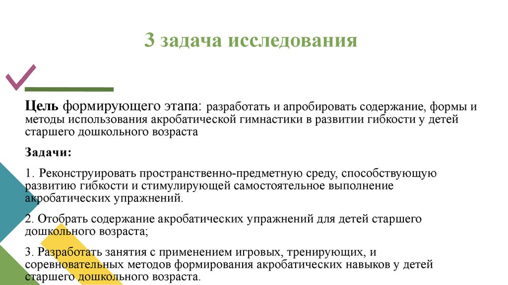3 задача исследованияЦель формирующего этапа: разработать и апробировать содержание, формы и