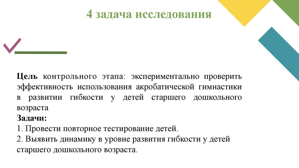 4 задача исследованияЦель контрольного этапа: экспериментально проверить
