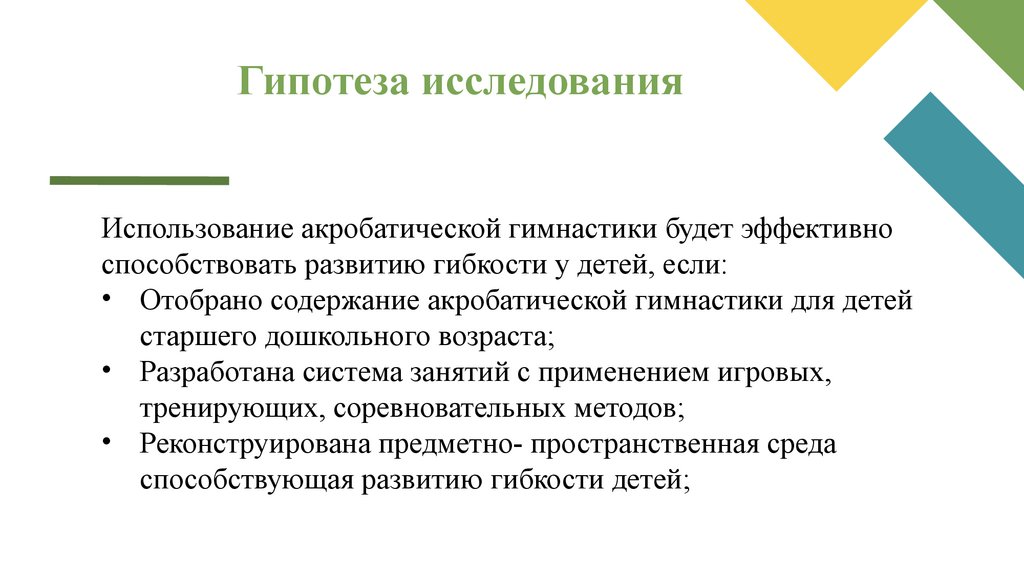 Гипотеза исследованияИспользование акробатической гимнастики будет эффективно