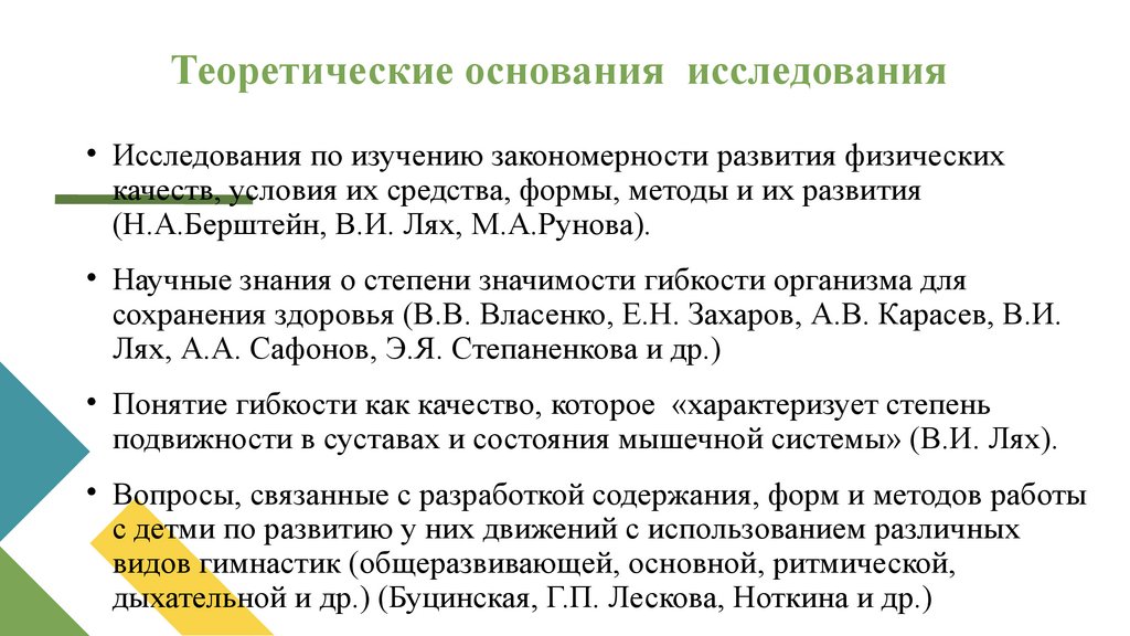 Теоретические основания исследования• Исследования по изучению закономерности развития физических