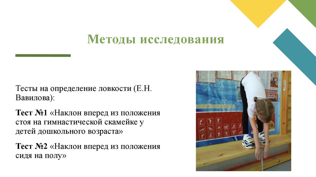 Методы исследованияТесты на определение ловкости (Е.Н.