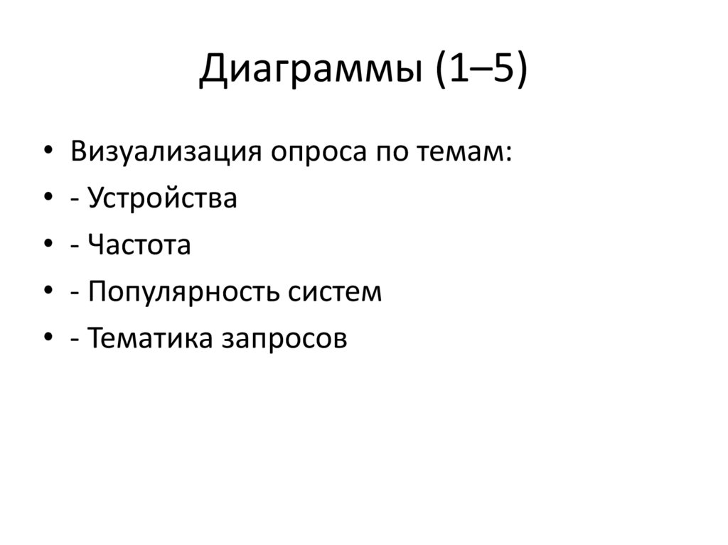 Диаграммы (1–5)• Визуализация опроса по темам: