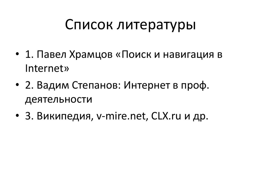 Список литературы• 1. Павел Храмцов «Поиск и навигация в