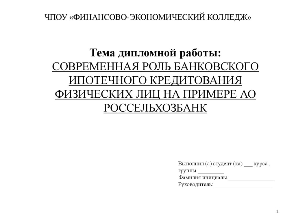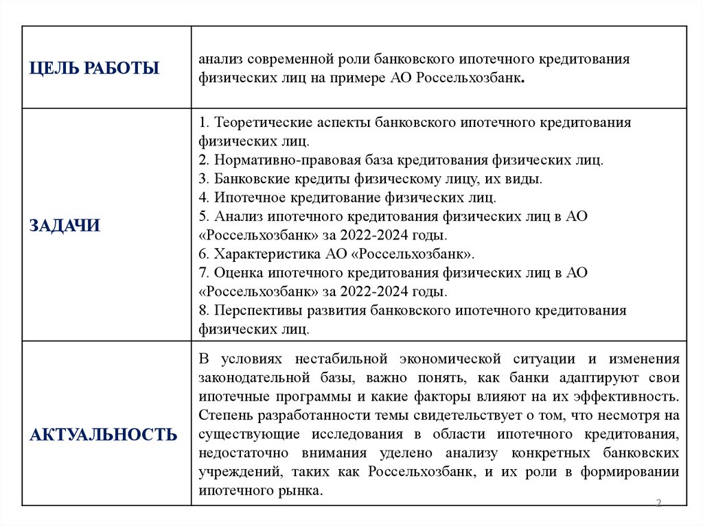 Современная роль банковского ипотечного кредитования физических лиц на примере АО РОССЕЛЬХОЗБАНК