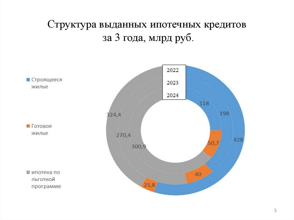 Структура выданных ипотечных кредитовза 3 года, млрд руб.