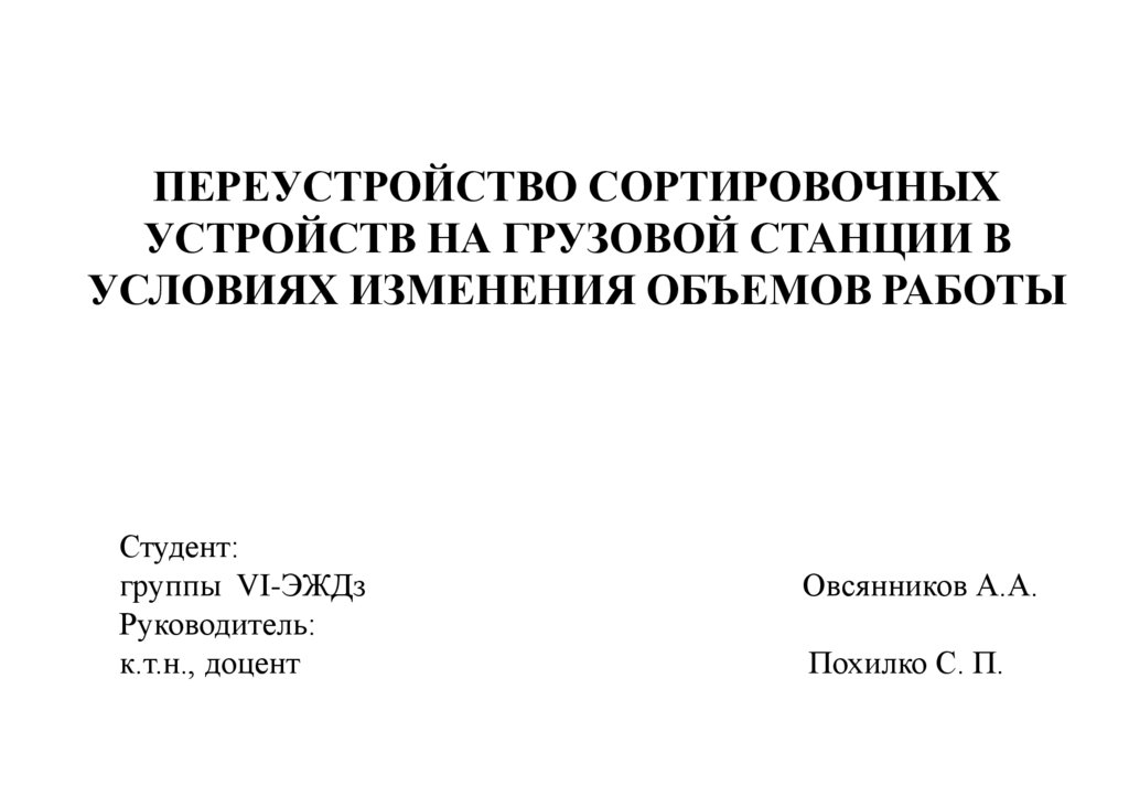 ПЕРЕУСТРОЙСТВО СОРТИРОВОЧНЫХУСТРОЙСТВ НА ГРУЗОВОЙ СТАНЦИИ В