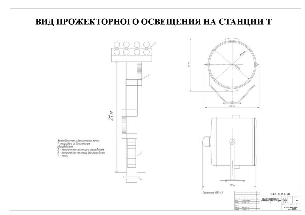 ВИД ПРОЖЕКТОРНОГО ОСВЕЩЕНИЯ НА СТАНЦИИ ТЭЖД. 23.05.04 Д6