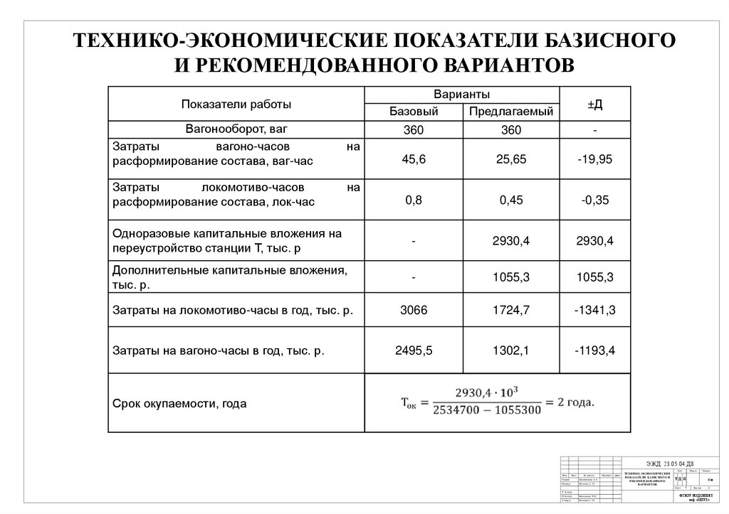 ТЕХНИКО-ЭКОНОМИЧЕСКИЕ ПОКАЗАТЕЛИ БАЗИСНОГОИ РЕКОМЕНДОВАННОГО ВАРИАНТОВ