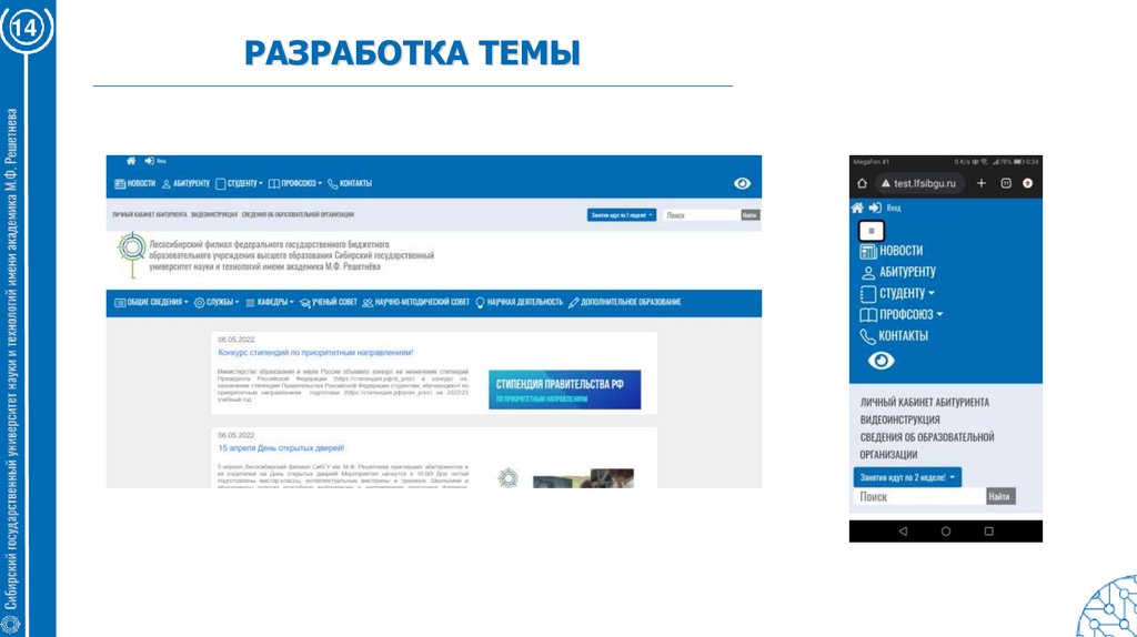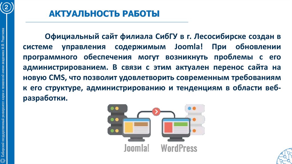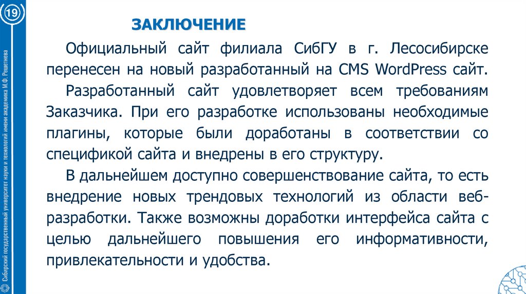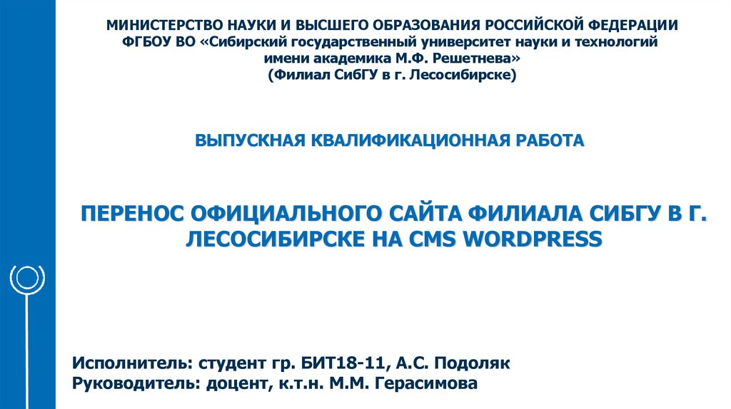 Перенос официального сайта филиала СИБГУ в г. Лесосибирске на CMS WORDPRESS