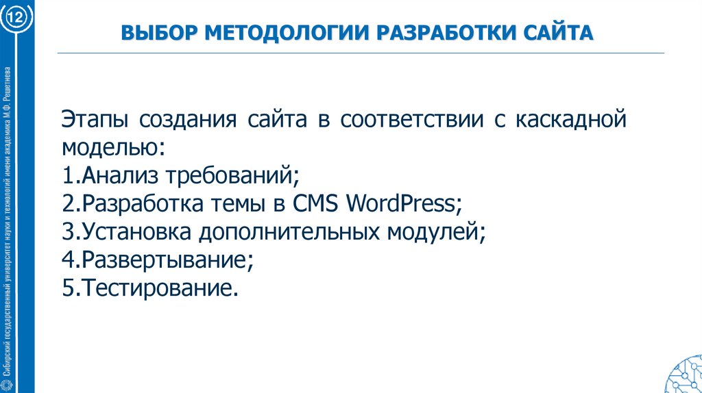 12ВЫБОР МЕТОДОЛОГИИ РАЗРАБОТКИ САЙТА