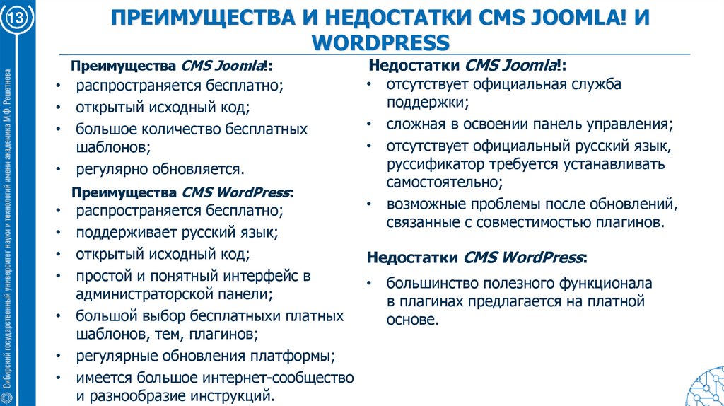 ПРЕИМУЩЕСТВА И НЕДОСТАТКИ CMS JOOMLA! ИWORDPRESS
