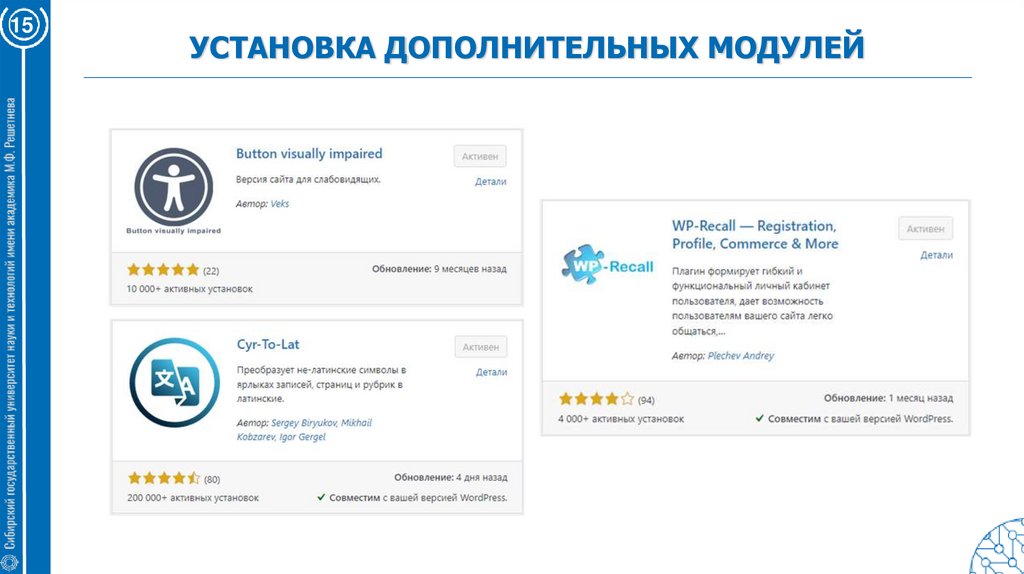 15УСТАНОВКА ДОПОЛНИТЕЛЬНЫХ МОДУЛЕЙ
