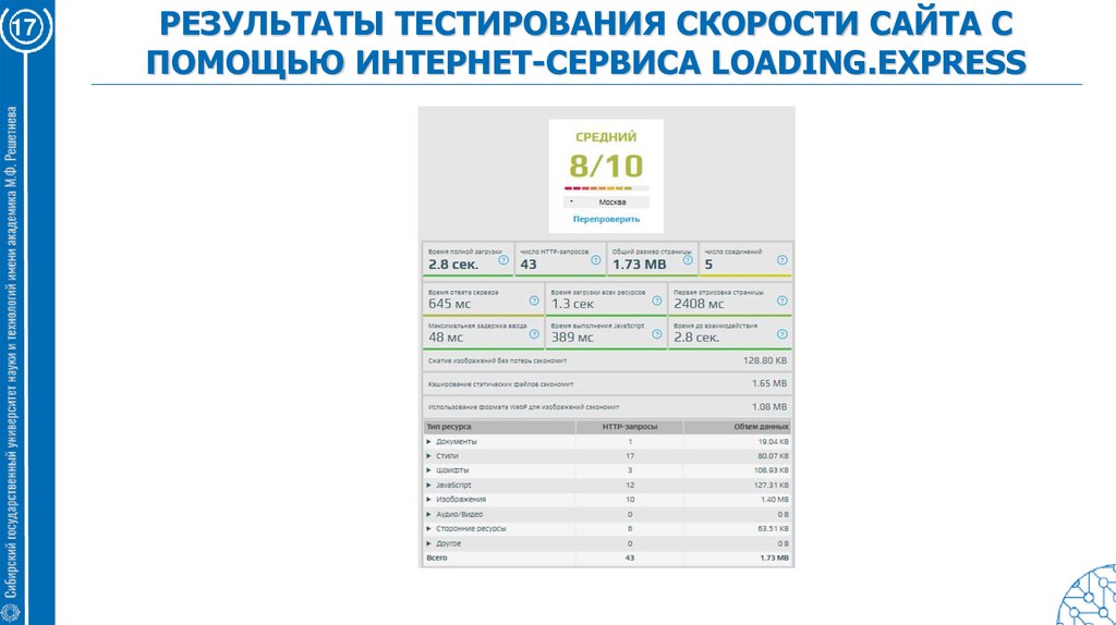 17РЕЗУЛЬТАТЫ ТЕСТИРОВАНИЯ СКОРОСТИ САЙТА С