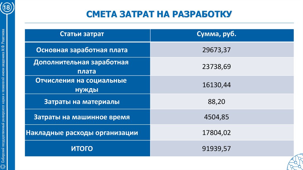 18СМЕТА ЗАТРАТ НА РАЗРАБОТКУ