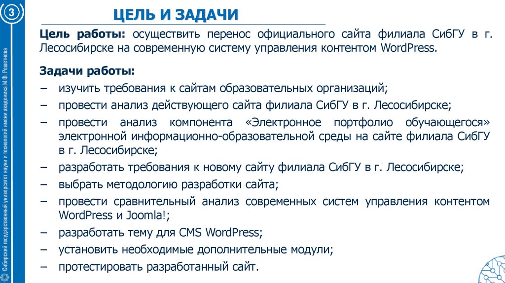 − провести анализ действующего сайта филиала СибГУ в г. Лесосибирске;