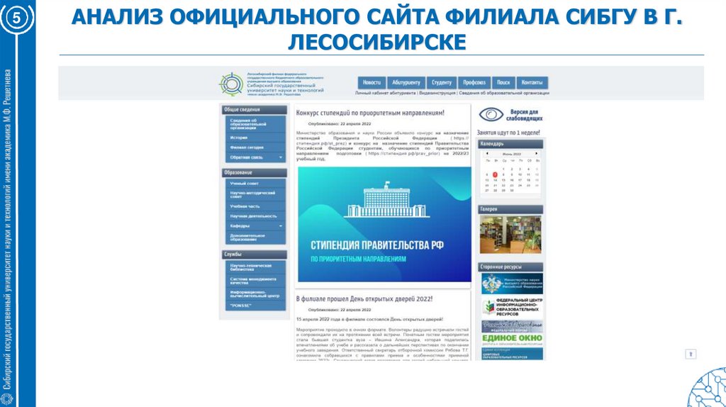 5АНАЛИЗ ОФИЦИАЛЬНОГО САЙТА ФИЛИАЛА СИБГУ В Г.