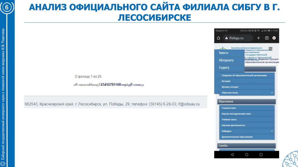 6АНАЛИЗ ОФИЦИАЛЬНОГО САЙТА ФИЛИАЛА СИБГУ В Г.