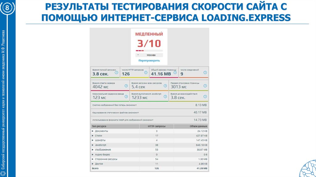 8РЕЗУЛЬТАТЫ ТЕСТИРОВАНИЯ СКОРОСТИ САЙТА С