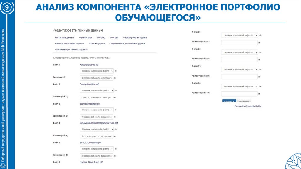 9АНАЛИЗ КОМПОНЕНТА «ЭЛЕКТРОННОЕ ПОРТФОЛИО