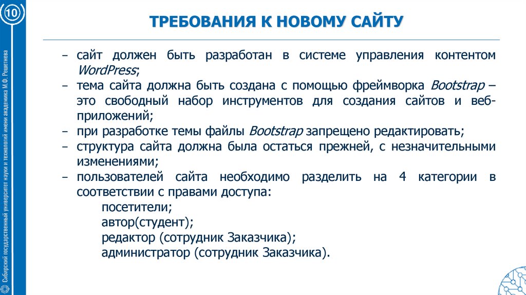 10ТРЕБОВАНИЯ К НОВОМУ САЙТУ