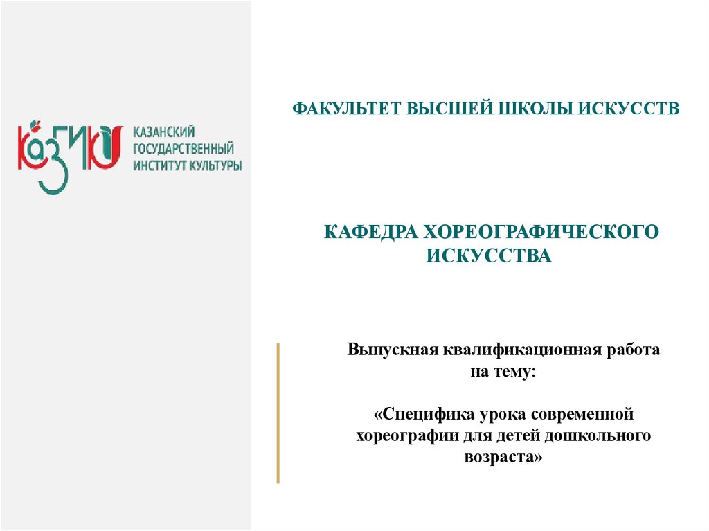ФАКУЛЬТЕТ ВЫСШЕЙ ШКОЛЫ ИСКУССТВКАФЕДРА ХОРЕОГРАФИЧЕСКОГО