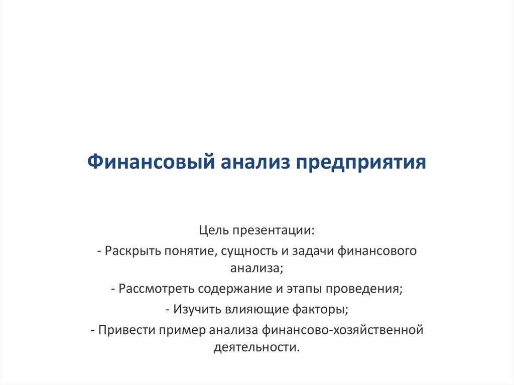 • Финансовый анализ — это система методов оценки и интерпретациифинансовой информации предприятия, направленная на принятие