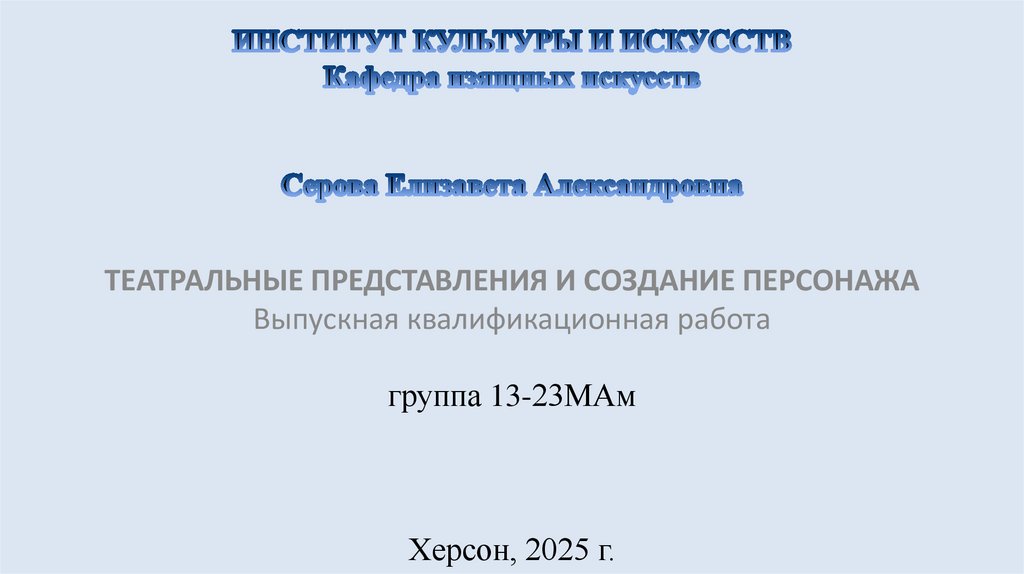 1. ИНСТИТУТ КУЛЬТУРЫ И ИСКУССТВ Кафедра изящных искусств Серова Елизавета Александровна