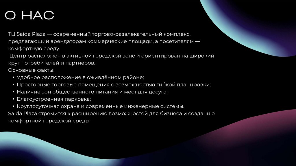 ТЦ Saida Plaza — современный торгово-развлекательный комплекс,предлагающий арендаторам коммерческие площади, а посетителям —